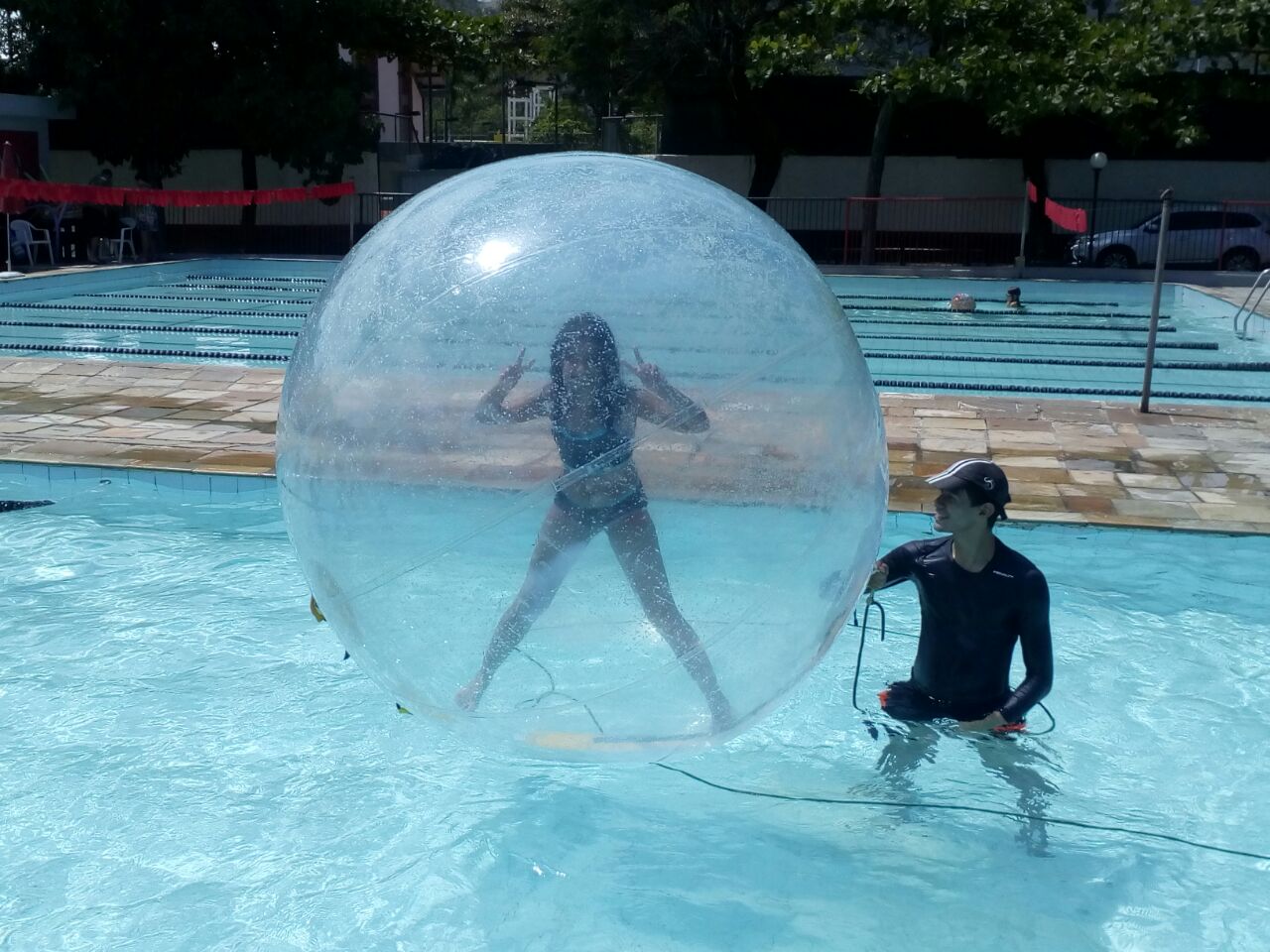 A incrível waterball completa a diversão.
